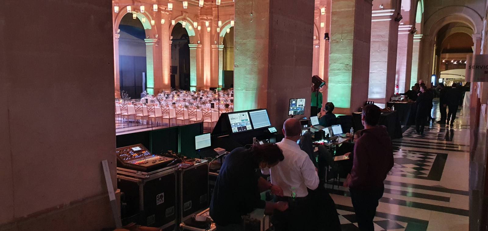 Pour cette prestation, nous avons réalisé la sonorisation complète dans le Hall du Palais de la Bourse, l'éclairage intérieur / extérieur, et le montage d'un écran Led plein jour.