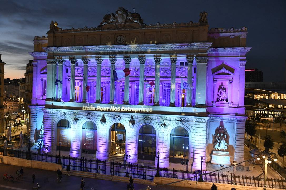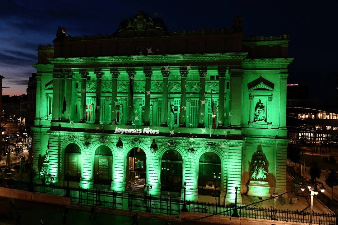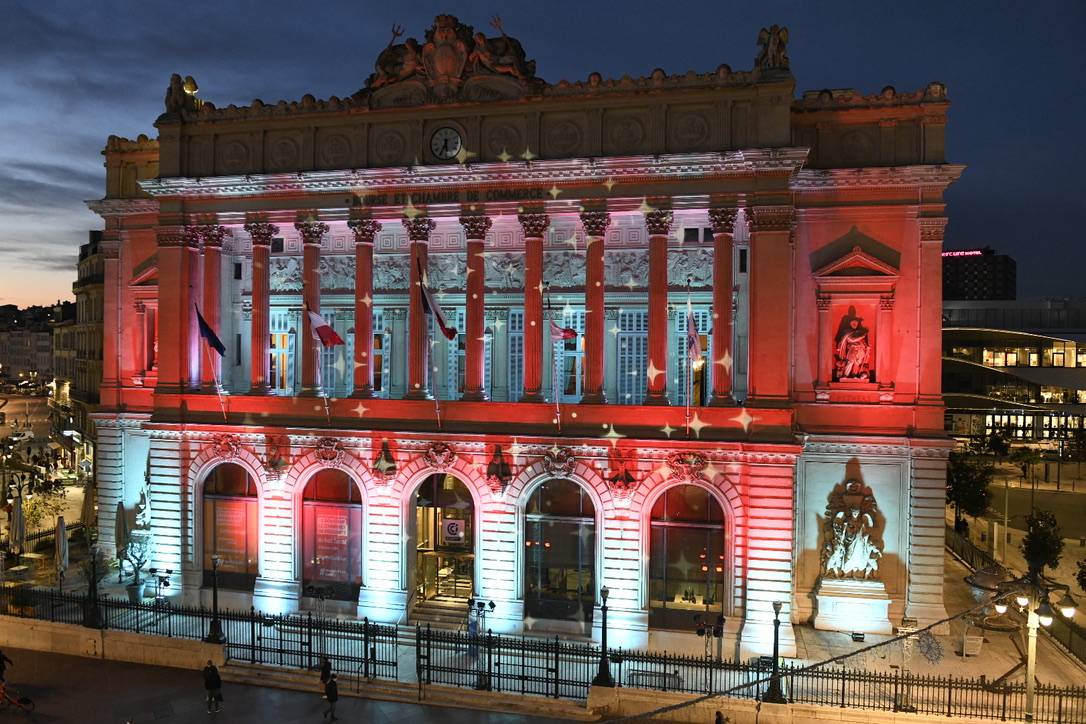 Avec la CCIAMP nous avons eu la chance, d'avoir eu l'opportunité de montrer nos compétences dans le domaine de la mise en lumière architectural d'un bâtiment mythique de Marseille : Le Palais de la Bourse à Marseille